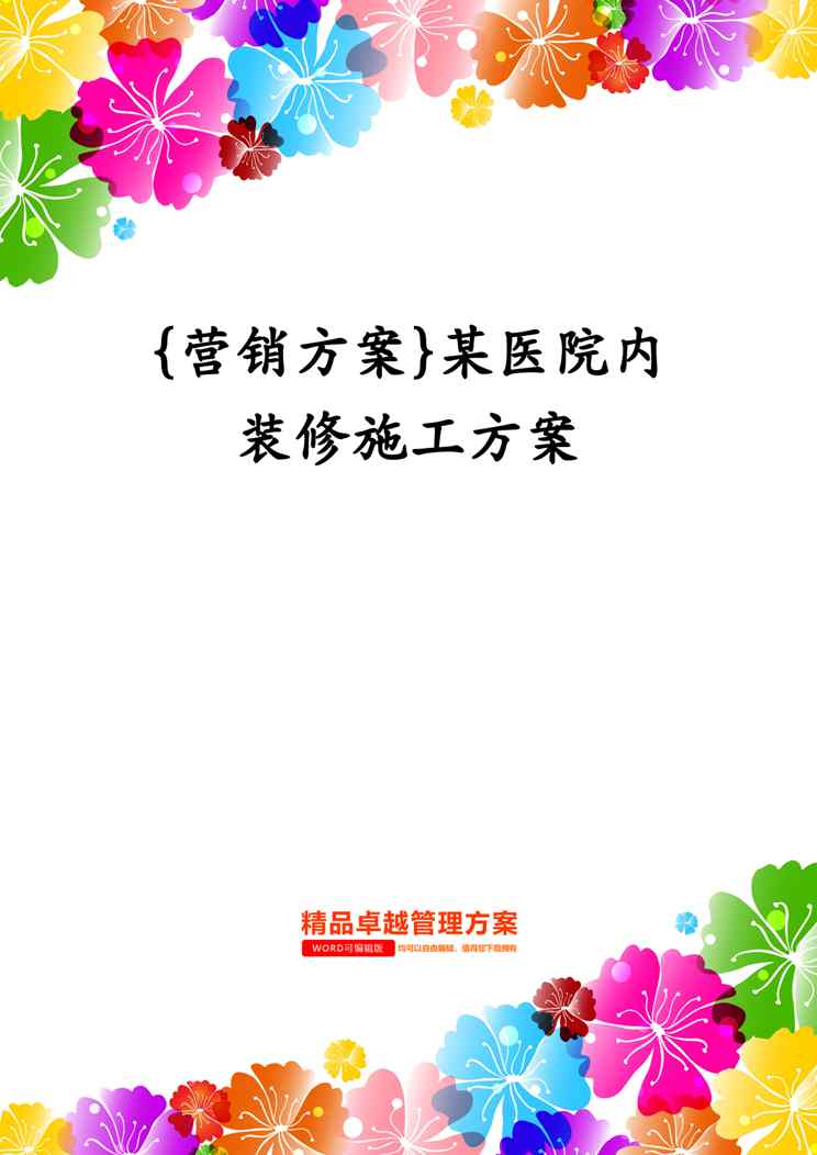本站正式发布了《{营销方案}某医院内装修施工方案》文档,文档详细内容可下载阅读。 声明:本站所有文章,如无特殊说明或标注,均为本站原创发布。任何个人或组织,在未征得本站同意时,禁止复制、盗用、采集、发布本站内容到任何网站、书籍等各类媒体平台。如若本站内容侵犯了原著者的合法权益,可联系我们进行处理。