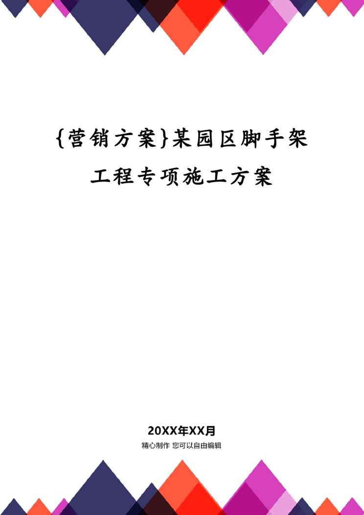 不久前,最新文档《{营销方案}某园区脚手架工程专项施工方案》全文正式在本站发布,感兴趣的用户可以下载阅读。 声明:本站所有文章,如无特殊说明或标注,均为本站原创发布。任何个人或组织,在未征得本站同意时,禁止复制、盗用、采集、发布本站内容到任何网站、书籍等各类媒体平台。如若本站内容侵犯了原著者的合法权益,可联系我们进行处理。