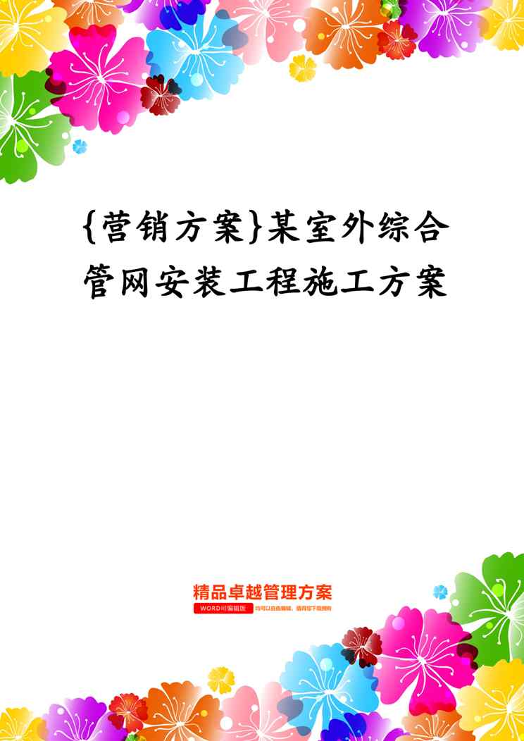不久前,最新文档《{营销方案}某室外综合管网安装工程施工方案》全文正式在本站发布,感兴趣的用户可以下载阅读。 声明:本站所有文章,如无特殊说明或标注,均为本站原创发布。任何个人或组织,在未征得本站同意时,禁止复制、盗用、采集、发布本站内容到任何网站、书籍等各类媒体平台。如若本站内容侵犯了原著者的合法权益,可联系我们进行处理。