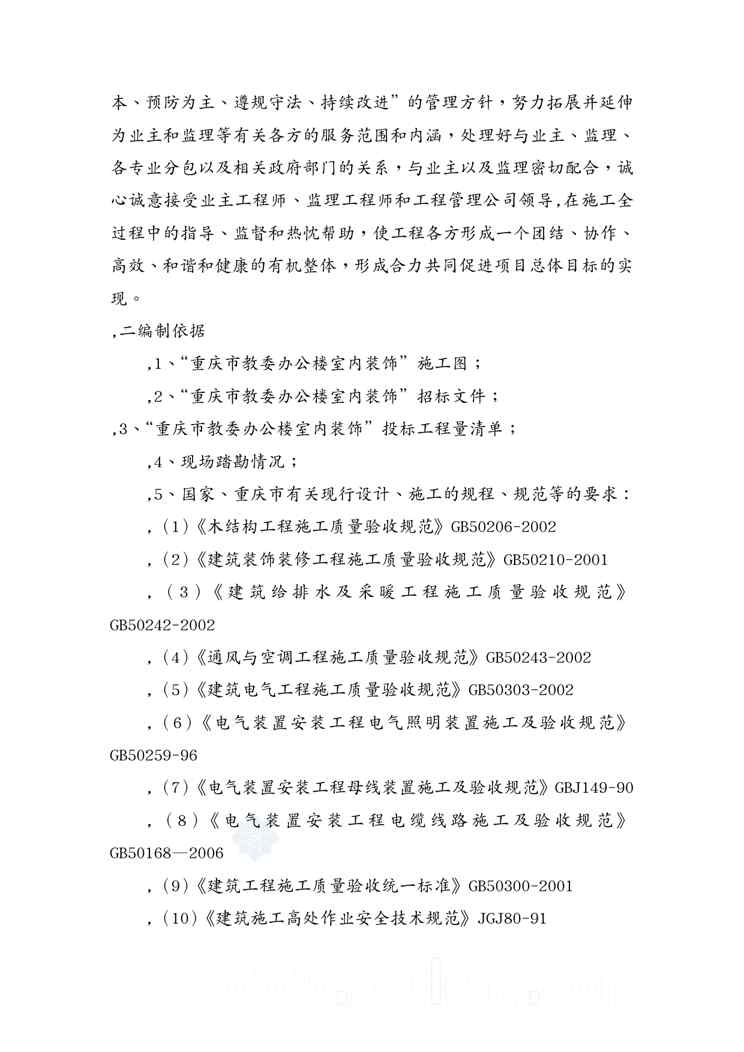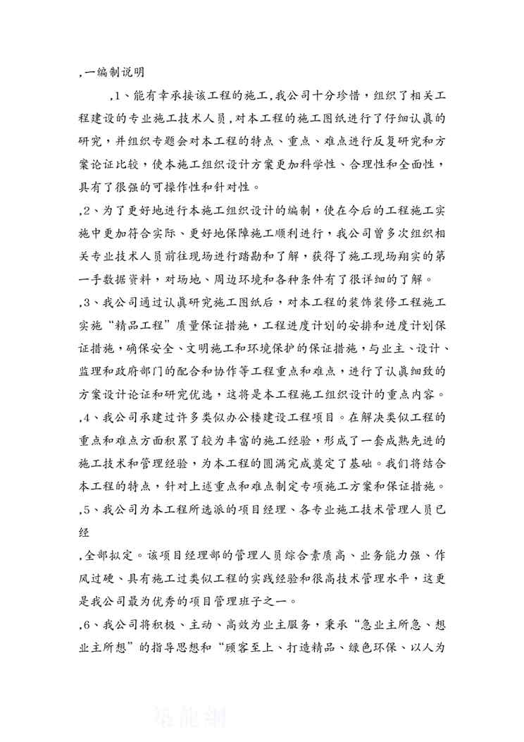 本站资深用户发布了最新的《{营销方案}某市市某办公楼室内装修工程施工方案》文档,以下内容为预览,详细内容可下载阅读。 声明:本站所有文章,如无特殊说明或标注,均为本站原创发布。任何个人或组织,在未征得本站同意时,禁止复制、盗用、采集、发布本站内容到任何网站、书籍等各类媒体平台。如若本站内容侵犯了原著者的合法权益,可联系我们进行处理。