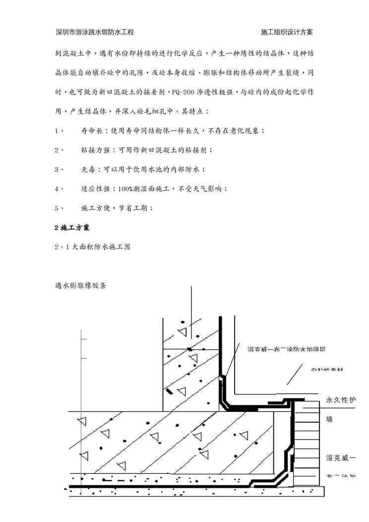 本站资深用户发布了最新的《{营销方案}某市市游泳池跳水馆防水施工方案》文档,以下内容为预览,详细内容可下载阅读。 声明:本站所有文章,如无特殊说明或标注,均为本站原创发布。任何个人或组织,在未征得本站同意时,禁止复制、盗用、采集、发布本站内容到任何网站、书籍等各类媒体平台。如若本站内容侵犯了原著者的合法权益,可联系我们进行处理。