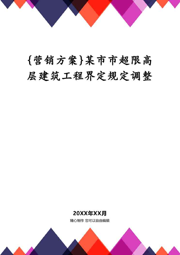 本站正式发布了《{营销方案}某市市超限高层建筑工程界定规定调整》文档,文档详细内容可下载阅读。 声明:本站所有文章,如无特殊说明或标注,均为本站原创发布。任何个人或组织,在未征得本站同意时,禁止复制、盗用、采集、发布本站内容到任何网站、书籍等各类媒体平台。如若本站内容侵犯了原著者的合法权益,可联系我们进行处理。