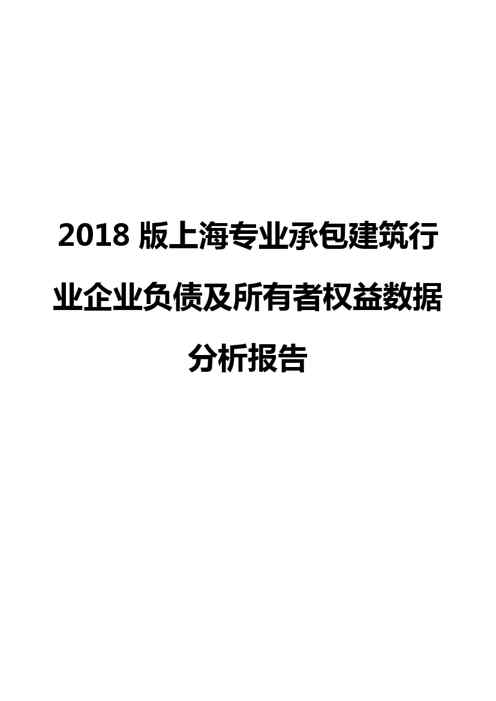 本站正式发布了《2018版上海专业承包建筑行业企业负债及所有者权益数据分析报告》文档,文档详细内容可下载阅读。 声明:本站所有文章,如无特殊说明或标注,均为本站原创发布。任何个人或组织,在未征得本站同意时,禁止复制、盗用、采集、发布本站内容到任何网站、书籍等各类媒体平台。如若本站内容侵犯了原著者的合法权益,可联系我们进行处理。