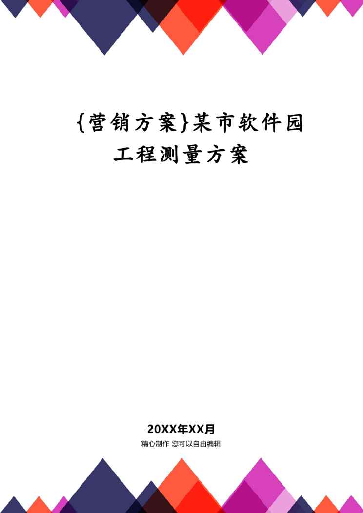 不久前,最新文档《{营销方案}某市软件园工程测量方案》全文正式在本站发布,感兴趣的用户可以下载阅读。 声明:本站所有文章,如无特殊说明或标注,均为本站原创发布。任何个人或组织,在未征得本站同意时,禁止复制、盗用、采集、发布本站内容到任何网站、书籍等各类媒体平台。如若本站内容侵犯了原著者的合法权益,可联系我们进行处理。