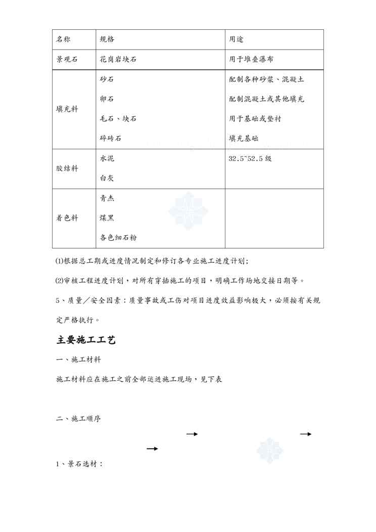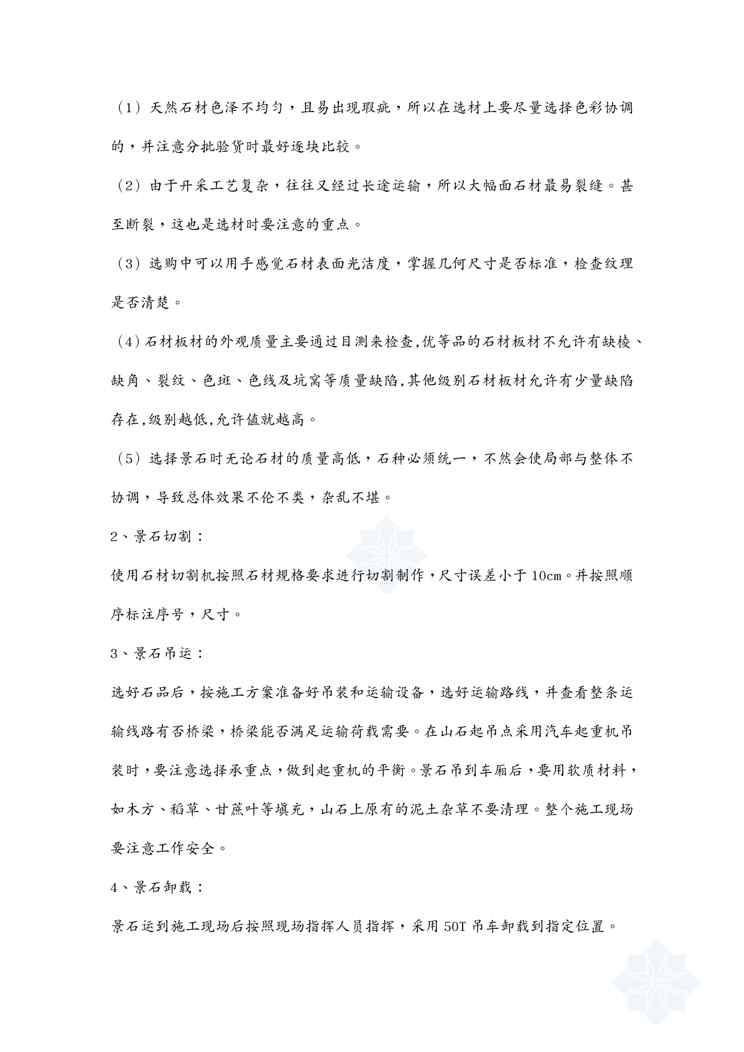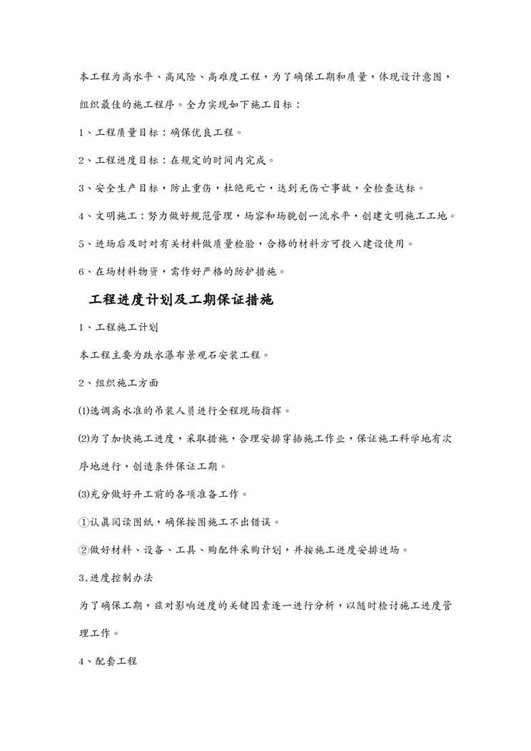 本站资深用户发布了最新的《{营销方案}某植物园叠水瀑布景观石安装施工方案》文档,以下内容为预览,详细内容可下载阅读。 声明:本站所有文章,如无特殊说明或标注,均为本站原创发布。任何个人或组织,在未征得本站同意时,禁止复制、盗用、采集、发布本站内容到任何网站、书籍等各类媒体平台。如若本站内容侵犯了原著者的合法权益,可联系我们进行处理。