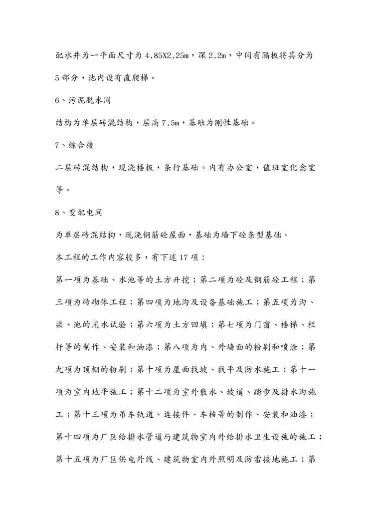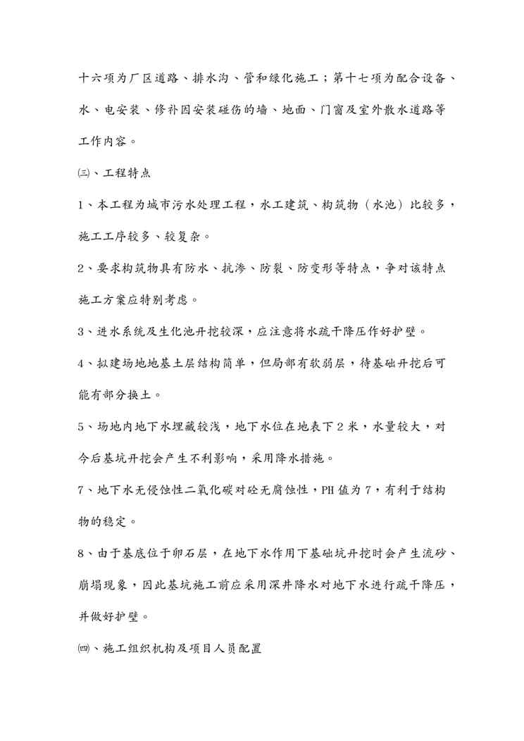 本站资深用户发布了最新的《{营销方案}某污水处理厂施工方案土建》文档,以下内容为预览,详细内容可下载阅读。 声明:本站所有文章,如无特殊说明或标注,均为本站原创发布。任何个人或组织,在未征得本站同意时,禁止复制、盗用、采集、发布本站内容到任何网站、书籍等各类媒体平台。如若本站内容侵犯了原著者的合法权益,可联系我们进行处理。