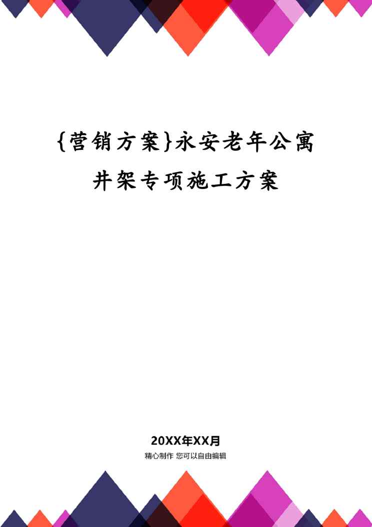 不久前,最新文档《{营销方案}永安老年公寓井架专项施工方案》全文正式在本站发布,感兴趣的用户可以下载阅读。 声明:本站所有文章,如无特殊说明或标注,均为本站原创发布。任何个人或组织,在未征得本站同意时,禁止复制、盗用、采集、发布本站内容到任何网站、书籍等各类媒体平台。如若本站内容侵犯了原著者的合法权益,可联系我们进行处理。