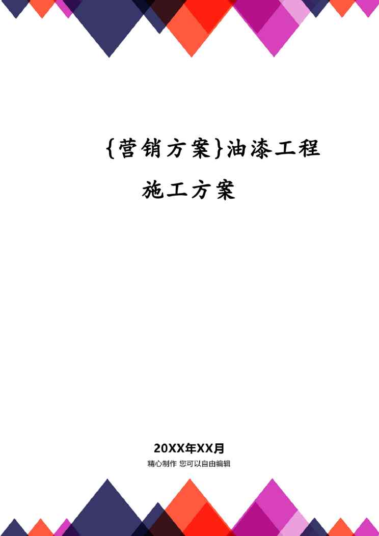 本站正式发布了《{营销方案}油漆工程施工方案》文档,文档详细内容可下载阅读。 声明:本站所有文章,如无特殊说明或标注,均为本站原创发布。任何个人或组织,在未征得本站同意时,禁止复制、盗用、采集、发布本站内容到任何网站、书籍等各类媒体平台。如若本站内容侵犯了原著者的合法权益,可联系我们进行处理。