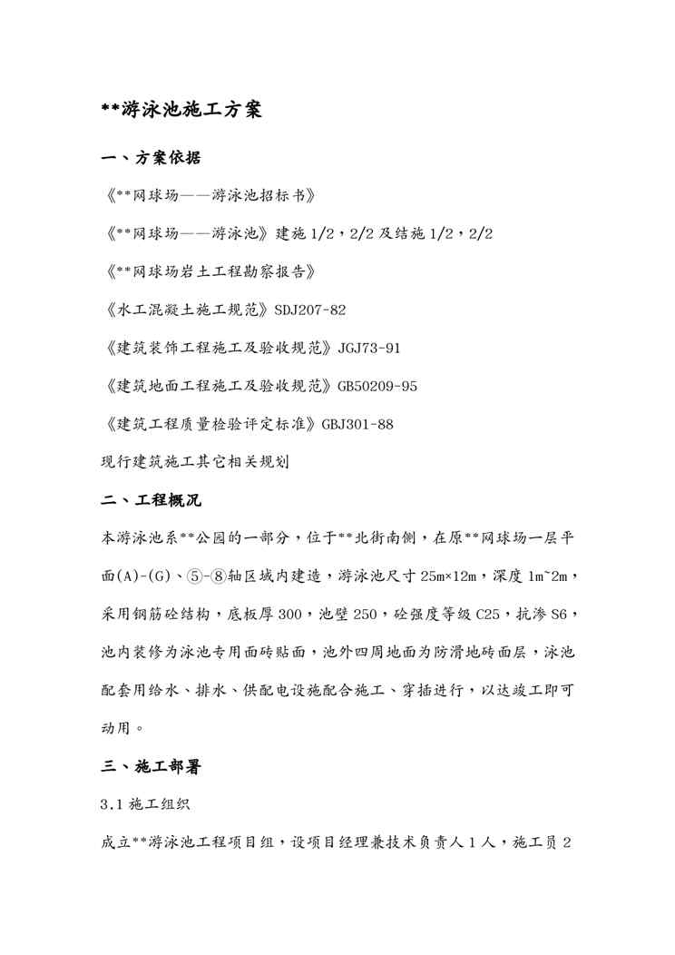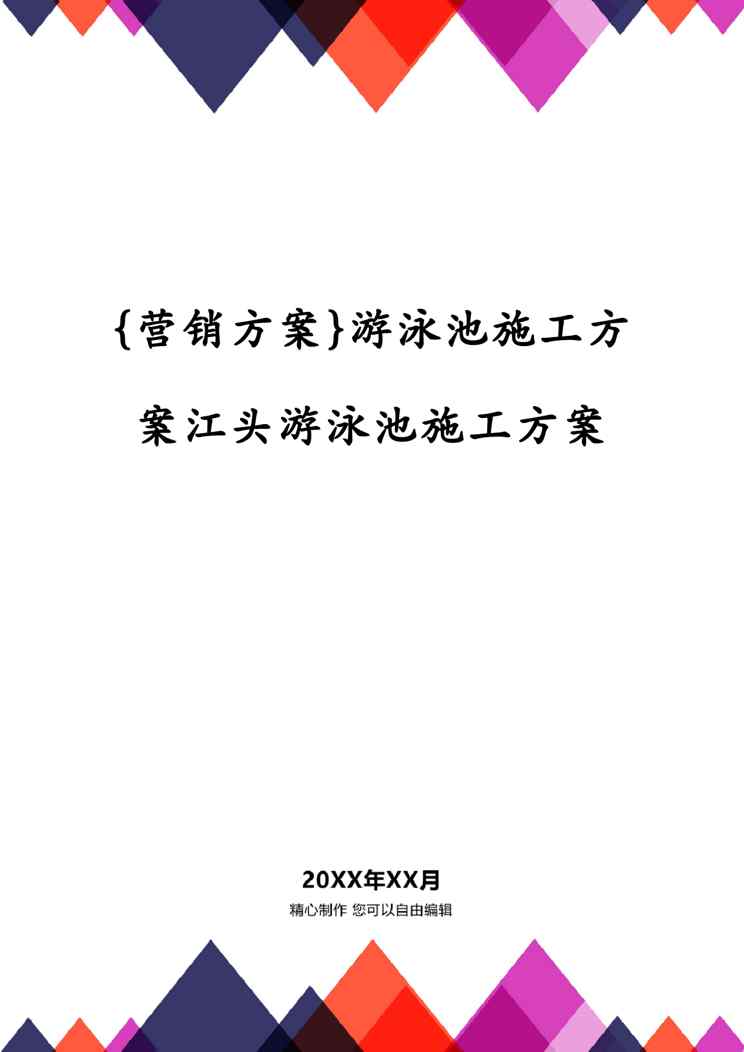 不久前,最新文档《{营销方案}游泳池施工方案江头游泳池施工方案》全文正式在本站发布,感兴趣的用户可以下载阅读。 声明:本站所有文章,如无特殊说明或标注,均为本站原创发布。任何个人或组织,在未征得本站同意时,禁止复制、盗用、采集、发布本站内容到任何网站、书籍等各类媒体平台。如若本站内容侵犯了原著者的合法权益,可联系我们进行处理。