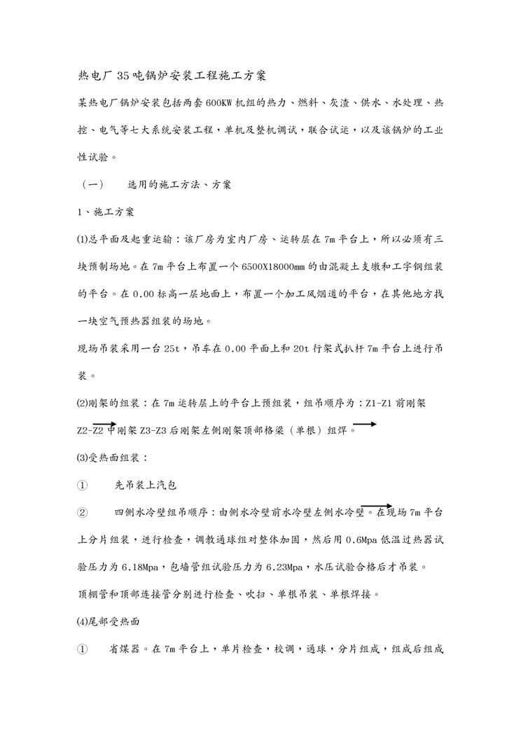 本站资深用户发布了最新的《{营销方案}热电厂吨锅炉安装工程施工方案》文档,以下内容为预览,详细内容可下载阅读。 声明:本站所有文章,如无特殊说明或标注,均为本站原创发布。任何个人或组织,在未征得本站同意时,禁止复制、盗用、采集、发布本站内容到任何网站、书籍等各类媒体平台。如若本站内容侵犯了原著者的合法权益,可联系我们进行处理。