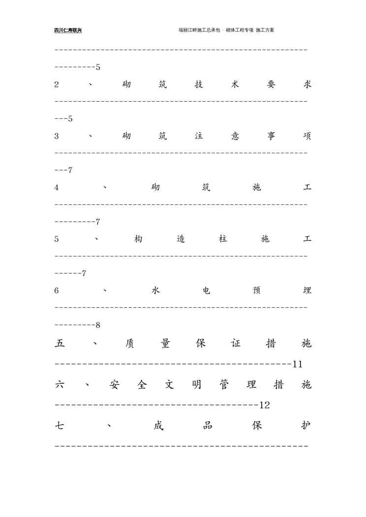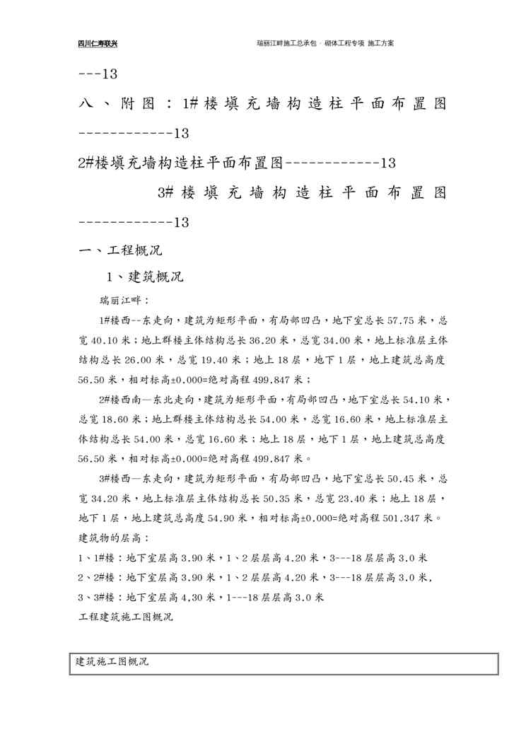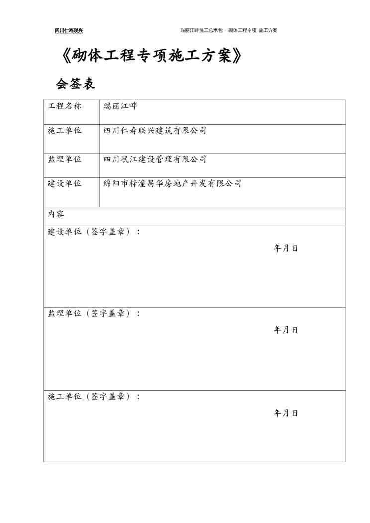 本站正式发布了《{营销方案}瑞丽江畔砌体工程专项施工方案》文档,文档详细内容可下载阅读。 声明:本站所有文章,如无特殊说明或标注,均为本站原创发布。任何个人或组织,在未征得本站同意时,禁止复制、盗用、采集、发布本站内容到任何网站、书籍等各类媒体平台。如若本站内容侵犯了原著者的合法权益,可联系我们进行处理。
