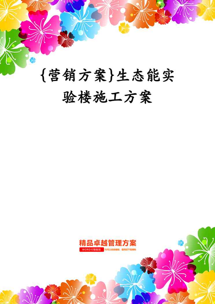 本站资深用户发布了最新的《{营销方案}生态能实验楼施工方案》文档,以下内容为预览,详细内容可下载阅读。 声明:本站所有文章,如无特殊说明或标注,均为本站原创发布。任何个人或组织,在未征得本站同意时,禁止复制、盗用、采集、发布本站内容到任何网站、书籍等各类媒体平台。如若本站内容侵犯了原著者的合法权益,可联系我们进行处理。