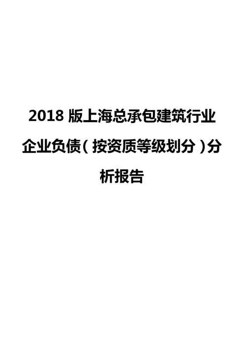 不久前,最新文档《2018版上海总承包建筑行业企业负债(按资质等级划分)分析报告》全文正式在本站发布,感兴趣的用户可以下载阅读。 声明:本站所有文章,如无特殊说明或标注,均为本站原创发布。任何个人或组织,在未征得本站同意时,禁止复制、盗用、采集、发布本站内容到任何网站、书籍等各类媒体平台。如若本站内容侵犯了原著者的合法权益,可联系我们进行处理。