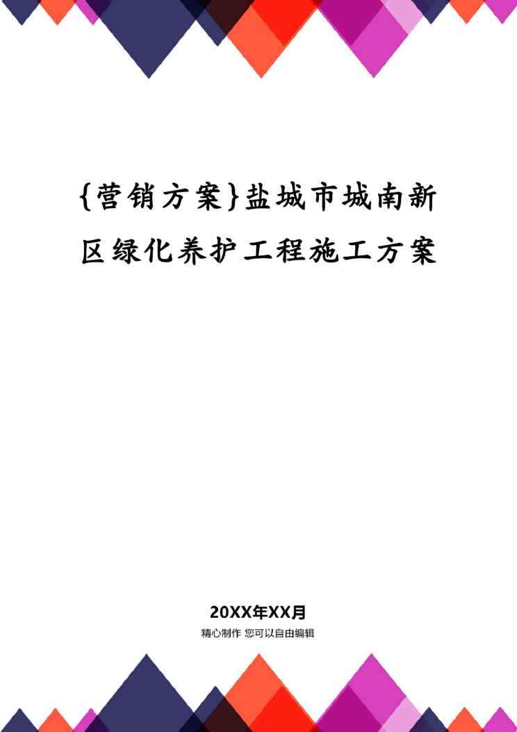 不久前,最新文档《{营销方案}盐城市城南新区绿化养护工程施工方案》全文正式在本站发布,感兴趣的用户可以下载阅读。 声明:本站所有文章,如无特殊说明或标注,均为本站原创发布。任何个人或组织,在未征得本站同意时,禁止复制、盗用、采集、发布本站内容到任何网站、书籍等各类媒体平台。如若本站内容侵犯了原著者的合法权益,可联系我们进行处理。