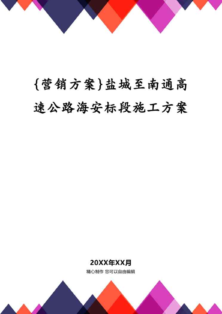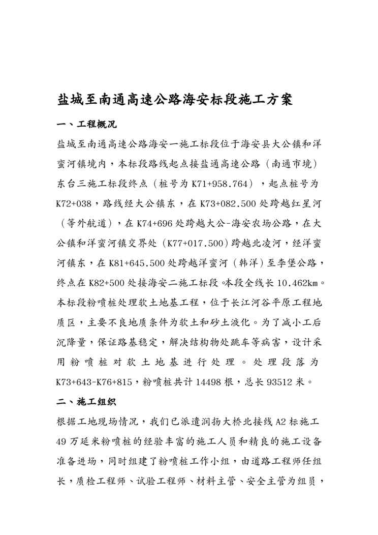 本站资深用户发布了最新的《{营销方案}盐城至南通高速公路海安标段施工方案》文档,以下内容为预览,详细内容可下载阅读。 声明:本站所有文章,如无特殊说明或标注,均为本站原创发布。任何个人或组织,在未征得本站同意时,禁止复制、盗用、采集、发布本站内容到任何网站、书籍等各类媒体平台。如若本站内容侵犯了原著者的合法权益,可联系我们进行处理。