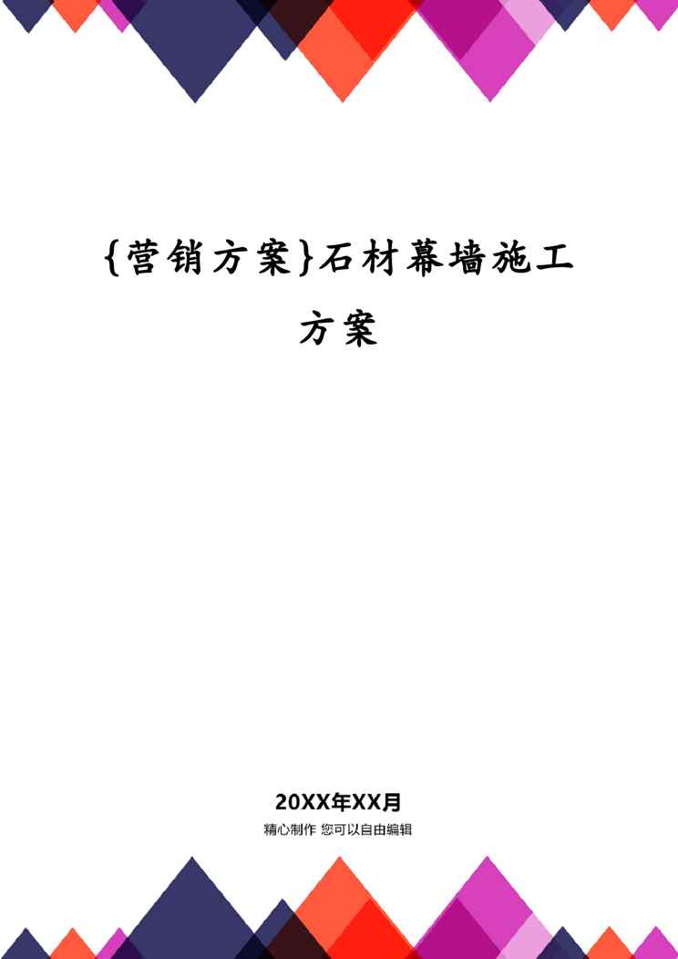 不久前,最新文档《{营销方案}石材幕墙施工方案》全文正式在本站发布,感兴趣的用户可以下载阅读。 声明:本站所有文章,如无特殊说明或标注,均为本站原创发布。任何个人或组织,在未征得本站同意时,禁止复制、盗用、采集、发布本站内容到任何网站、书籍等各类媒体平台。如若本站内容侵犯了原著者的合法权益,可联系我们进行处理。