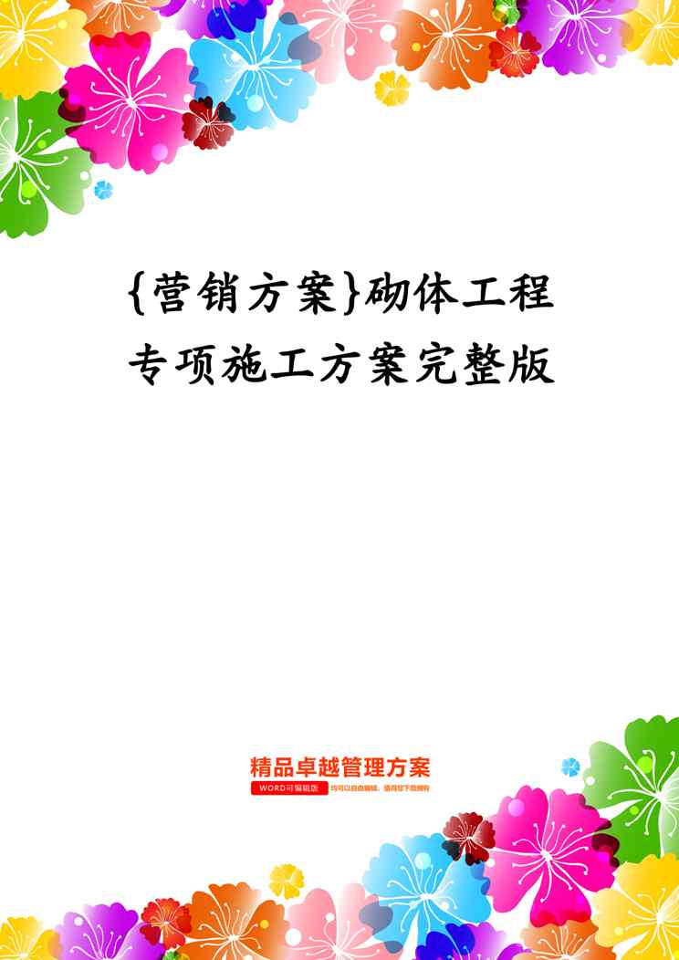 本站正式发布了《{营销方案}砌体工程专项施工方案完整版》文档,文档详细内容可下载阅读。 声明:本站所有文章,如无特殊说明或标注,均为本站原创发布。任何个人或组织,在未征得本站同意时,禁止复制、盗用、采集、发布本站内容到任何网站、书籍等各类媒体平台。如若本站内容侵犯了原著者的合法权益,可联系我们进行处理。