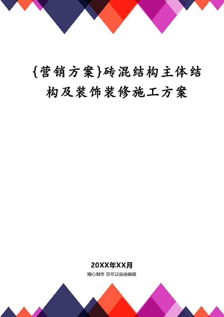 本站资深用户发布了最新的《{营销方案}砖混结构主体结构及装饰装修施工方案》文档,以下内容为预览,详细内容可下载阅读。 声明:本站所有文章,如无特殊说明或标注,均为本站原创发布。任何个人或组织,在未征得本站同意时,禁止复制、盗用、采集、发布本站内容到任何网站、书籍等各类媒体平台。如若本站内容侵犯了原著者的合法权益,可联系我们进行处理。