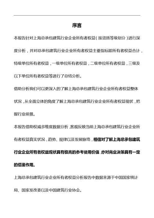 不久前,最新文档《2018版上海总承包建筑行业企业所有者权益(按资质等级划分)分析报告》全文正式在本站发布,感兴趣的用户可以下载阅读。 声明:本站所有文章,如无特殊说明或标注,均为本站原创发布。任何个人或组织,在未征得本站同意时,禁止复制、盗用、采集、发布本站内容到任何网站、书籍等各类媒体平台。如若本站内容侵犯了原著者的合法权益,可联系我们进行处理。