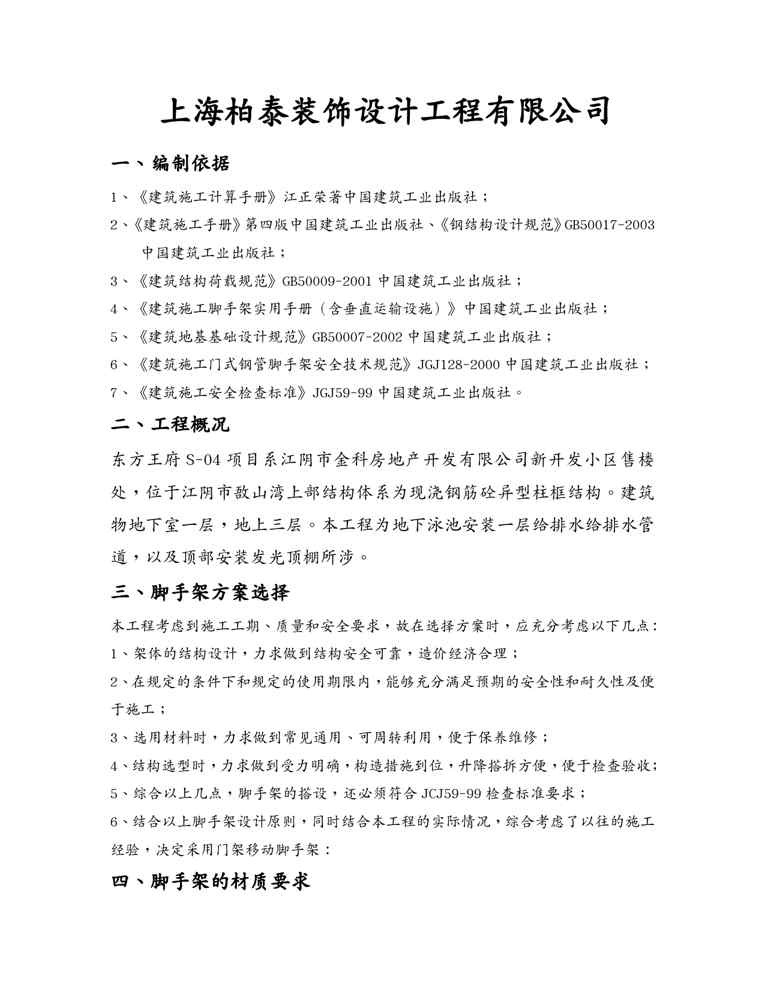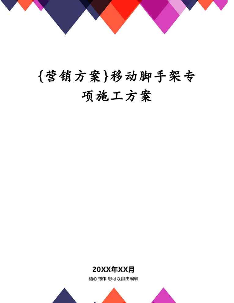 本站资深用户发布了最新的《{营销方案}移动脚手架专项施工方案》文档,以下内容为预览,详细内容可下载阅读。 声明:本站所有文章,如无特殊说明或标注,均为本站原创发布。任何个人或组织,在未征得本站同意时,禁止复制、盗用、采集、发布本站内容到任何网站、书籍等各类媒体平台。如若本站内容侵犯了原著者的合法权益,可联系我们进行处理。