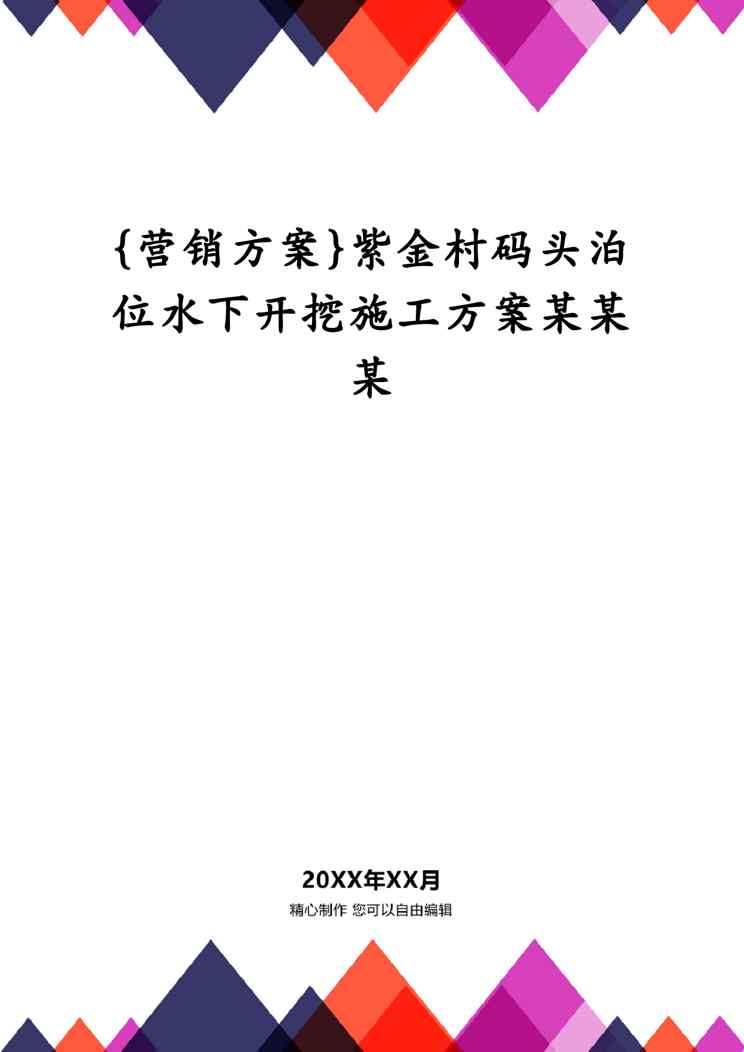 本站正式发布了《{营销方案}紫金村码头泊位水下开挖施工方案某某某》文档,文档详细内容可下载阅读。 声明:本站所有文章,如无特殊说明或标注,均为本站原创发布。任何个人或组织,在未征得本站同意时,禁止复制、盗用、采集、发布本站内容到任何网站、书籍等各类媒体平台。如若本站内容侵犯了原著者的合法权益,可联系我们进行处理。
