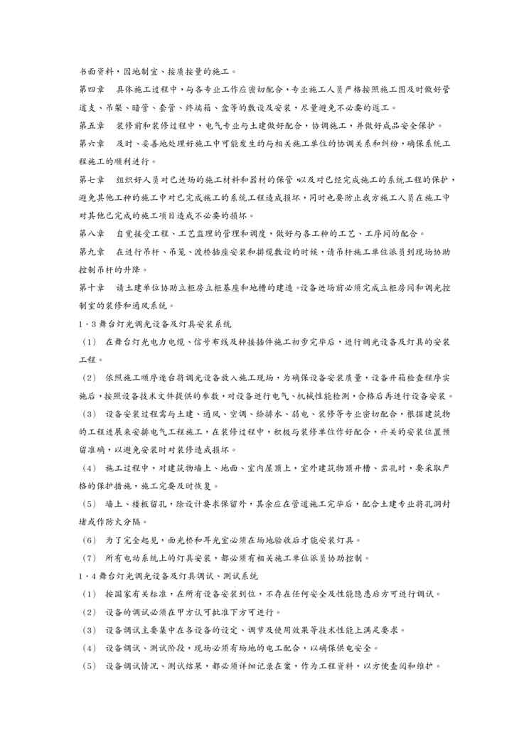 本站正式发布了《{营销方案}舞台灯光系统安装及施工方案》文档,文档详细内容可下载阅读。 声明:本站所有文章,如无特殊说明或标注,均为本站原创发布。任何个人或组织,在未征得本站同意时,禁止复制、盗用、采集、发布本站内容到任何网站、书籍等各类媒体平台。如若本站内容侵犯了原著者的合法权益,可联系我们进行处理。