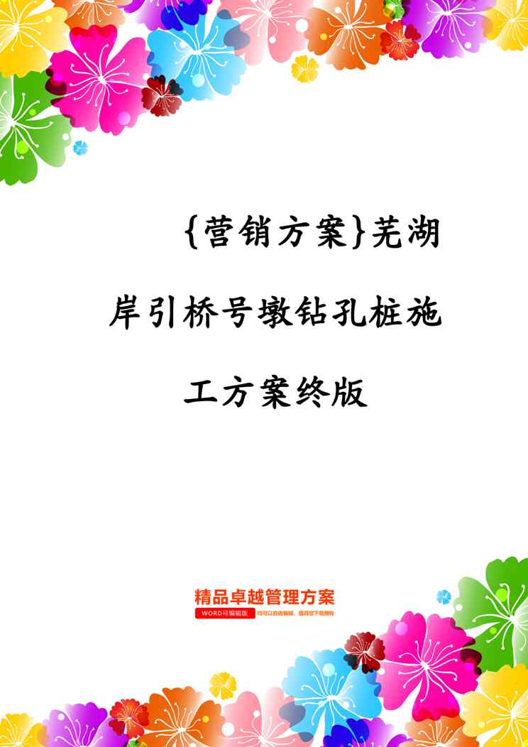 不久前,最新文档《{营销方案}芜湖岸引桥号墩钻孔桩施工方案终版》全文正式在本站发布,感兴趣的用户可以下载阅读。 声明:本站所有文章,如无特殊说明或标注,均为本站原创发布。任何个人或组织,在未征得本站同意时,禁止复制、盗用、采集、发布本站内容到任何网站、书籍等各类媒体平台。如若本站内容侵犯了原著者的合法权益,可联系我们进行处理。