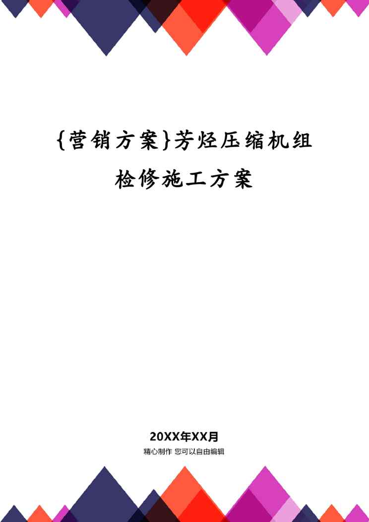 不久前,最新文档《{营销方案}芳烃压缩机组检修施工方案》全文正式在本站发布,感兴趣的用户可以下载阅读。 声明:本站所有文章,如无特殊说明或标注,均为本站原创发布。任何个人或组织,在未征得本站同意时,禁止复制、盗用、采集、发布本站内容到任何网站、书籍等各类媒体平台。如若本站内容侵犯了原著者的合法权益,可联系我们进行处理。
