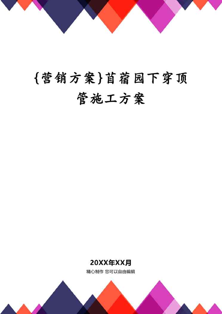 本站正式发布了《{营销方案}苜蓿园下穿顶管施工方案》文档,文档详细内容可下载阅读。 声明:本站所有文章,如无特殊说明或标注,均为本站原创发布。任何个人或组织,在未征得本站同意时,禁止复制、盗用、采集、发布本站内容到任何网站、书籍等各类媒体平台。如若本站内容侵犯了原著者的合法权益,可联系我们进行处理。