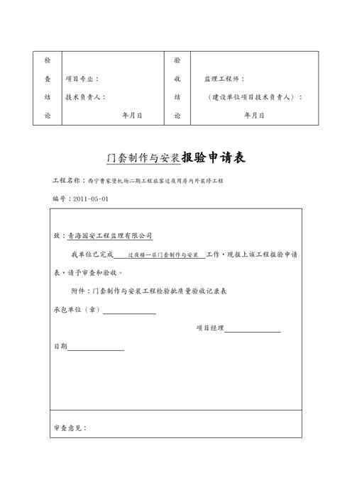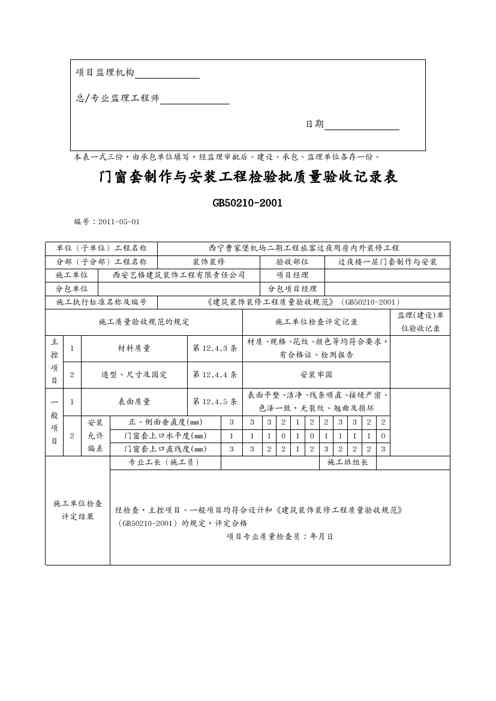 不久前,最新文档《{品质管理制度表格}门窗制作与安装工程质量验收表》全文正式在本站发布,感兴趣的用户可以下载阅读。 声明:本站所有文章,如无特殊说明或标注,均为本站原创发布。任何个人或组织,在未征得本站同意时,禁止复制、盗用、采集、发布本站内容到任何网站、书籍等各类媒体平台。如若本站内容侵犯了原著者的合法权益,可联系我们进行处理。
