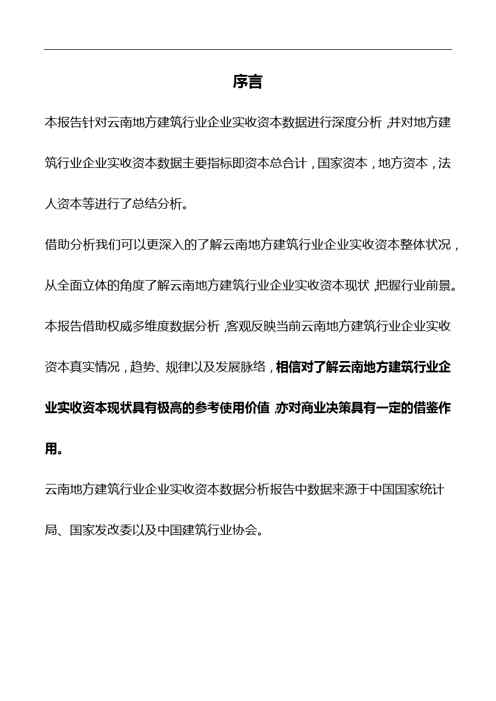 本站资深用户发布了最新的《2018版云南地方建筑行业企业实收资本数据分析报告》文档,以下内容为预览,详细内容可下载阅读。 声明:本站所有文章,如无特殊说明或标注,均为本站原创发布。任何个人或组织,在未征得本站同意时,禁止复制、盗用、采集、发布本站内容到任何网站、书籍等各类媒体平台。如若本站内容侵犯了原著者的合法权益,可联系我们进行处理。