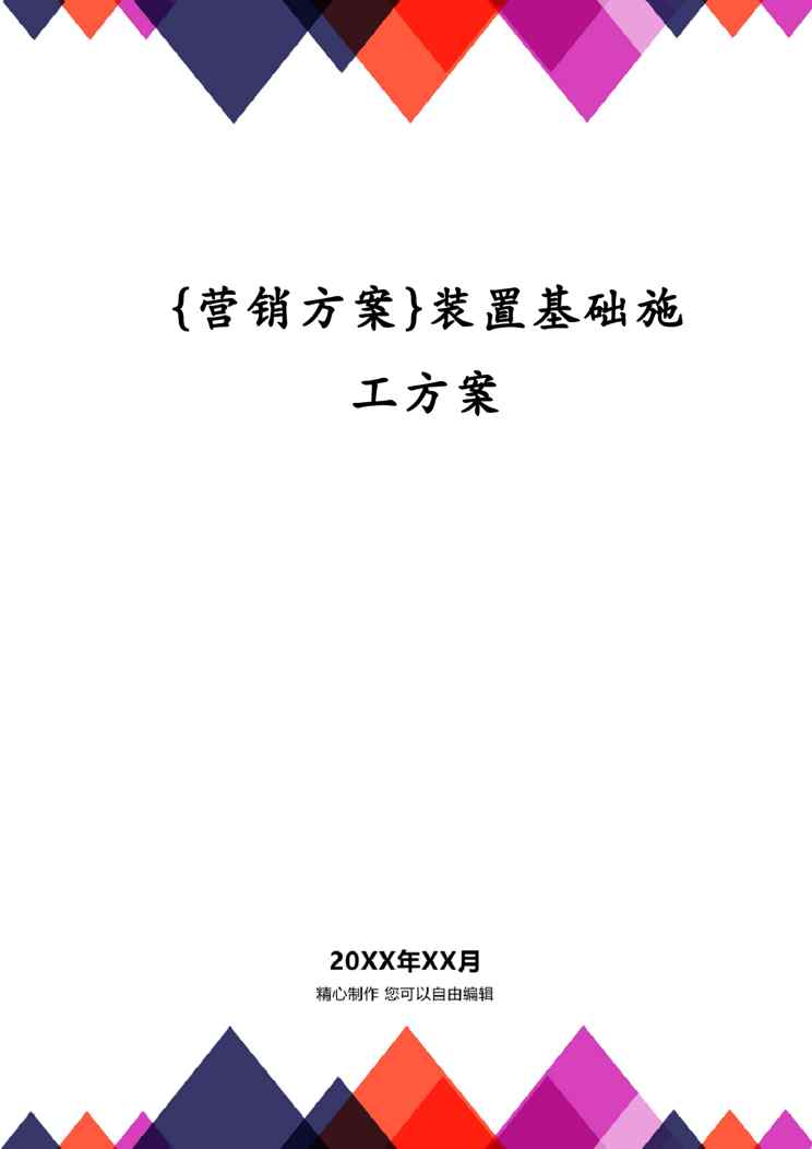 本站资深用户发布了最新的《{营销方案}装置基础施工方案》文档,以下内容为预览,详细内容可下载阅读。 声明:本站所有文章,如无特殊说明或标注,均为本站原创发布。任何个人或组织,在未征得本站同意时,禁止复制、盗用、采集、发布本站内容到任何网站、书籍等各类媒体平台。如若本站内容侵犯了原著者的合法权益,可联系我们进行处理。