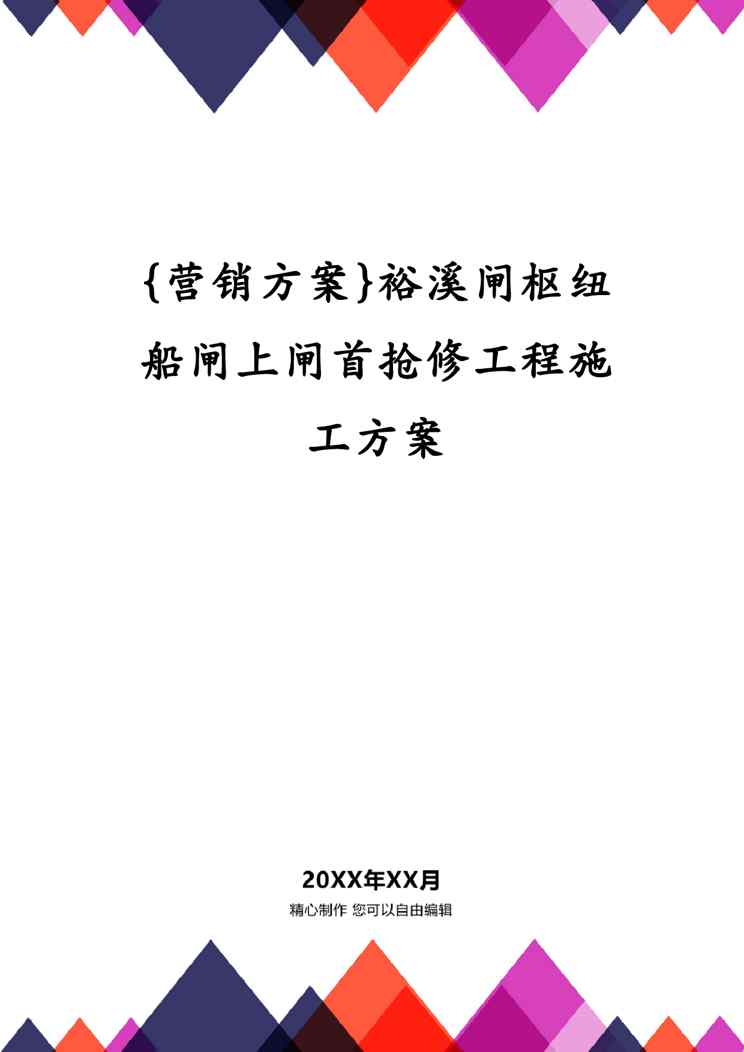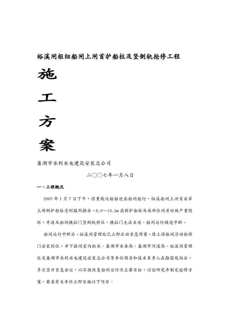 本站正式发布了《{营销方案}裕溪闸枢纽船闸上闸首抢修工程施工方案》文档,文档详细内容可下载阅读。 声明:本站所有文章,如无特殊说明或标注,均为本站原创发布。任何个人或组织,在未征得本站同意时,禁止复制、盗用、采集、发布本站内容到任何网站、书籍等各类媒体平台。如若本站内容侵犯了原著者的合法权益,可联系我们进行处理。