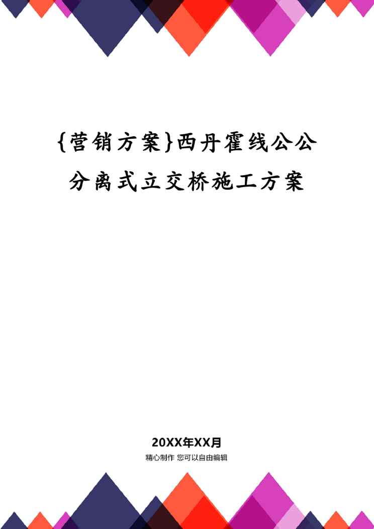 本站资深用户发布了最新的《{营销方案}西丹霍线公公分离式立交桥施工方案》文档,以下内容为预览,详细内容可下载阅读。 声明:本站所有文章,如无特殊说明或标注,均为本站原创发布。任何个人或组织,在未征得本站同意时,禁止复制、盗用、采集、发布本站内容到任何网站、书籍等各类媒体平台。如若本站内容侵犯了原著者的合法权益,可联系我们进行处理。