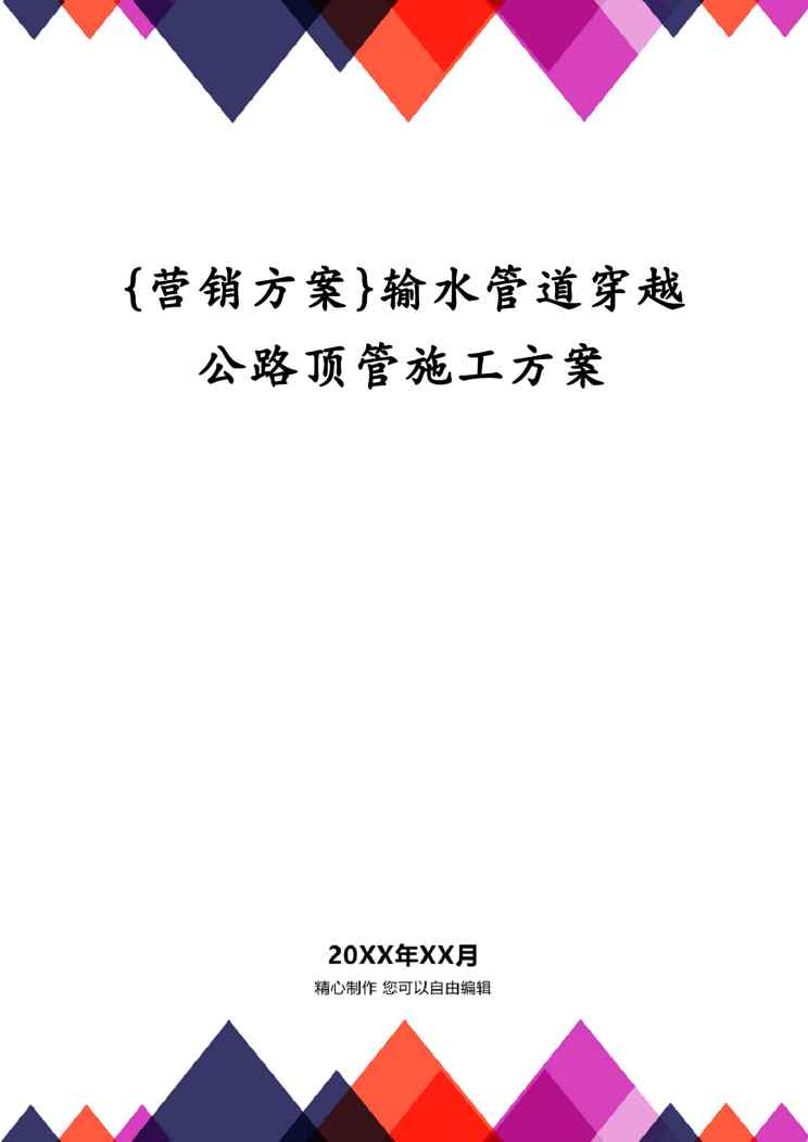 {营销方案}输水管道穿越公路顶管施工方案{营销方案}输水管道穿越公路顶管施工方案{营销方案}输水管道穿越公路顶管施工方案{营销方案}输水管道穿越公路顶管施工方案{营销方案}输水管道穿越公路顶管施工方案