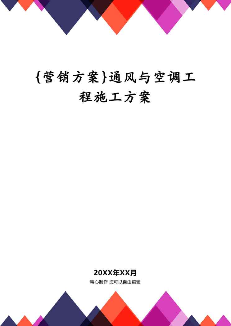 本站资深用户发布了最新的《{营销方案}通风与空调工程施工方案》文档,以下内容为预览,详细内容可下载阅读。 声明:本站所有文章,如无特殊说明或标注,均为本站原创发布。任何个人或组织,在未征得本站同意时,禁止复制、盗用、采集、发布本站内容到任何网站、书籍等各类媒体平台。如若本站内容侵犯了原著者的合法权益,可联系我们进行处理。