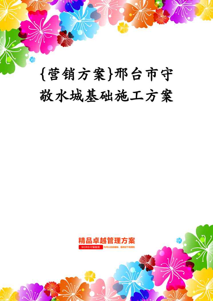 本站资深用户发布了最新的《{营销方案}邢台市守敬水城基础施工方案》文档,以下内容为预览,详细内容可下载阅读。 声明:本站所有文章,如无特殊说明或标注,均为本站原创发布。任何个人或组织,在未征得本站同意时,禁止复制、盗用、采集、发布本站内容到任何网站、书籍等各类媒体平台。如若本站内容侵犯了原著者的合法权益,可联系我们进行处理。