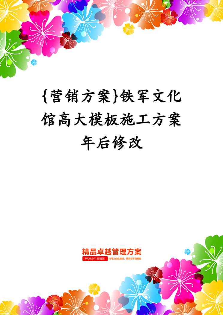 本站正式发布了《{营销方案}铁军文化馆高大模板施工方案年后修改》文档,文档详细内容可下载阅读。 声明:本站所有文章,如无特殊说明或标注,均为本站原创发布。任何个人或组织,在未征得本站同意时,禁止复制、盗用、采集、发布本站内容到任何网站、书籍等各类媒体平台。如若本站内容侵犯了原著者的合法权益,可联系我们进行处理。
