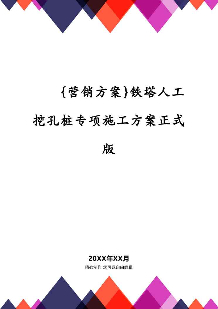 本站正式发布了《{营销方案}铁塔人工挖孔桩专项施工方案正式版》文档,文档详细内容可下载阅读。 声明:本站所有文章,如无特殊说明或标注,均为本站原创发布。任何个人或组织,在未征得本站同意时,禁止复制、盗用、采集、发布本站内容到任何网站、书籍等各类媒体平台。如若本站内容侵犯了原著者的合法权益,可联系我们进行处理。