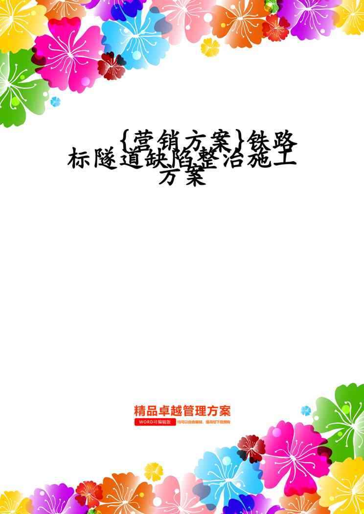 本站资深用户发布了最新的《{营销方案}铁路标隧道缺陷整治施工方案》文档,以下内容为预览,详细内容可下载阅读。 声明:本站所有文章,如无特殊说明或标注,均为本站原创发布。任何个人或组织,在未征得本站同意时,禁止复制、盗用、采集、发布本站内容到任何网站、书籍等各类媒体平台。如若本站内容侵犯了原著者的合法权益,可联系我们进行处理。