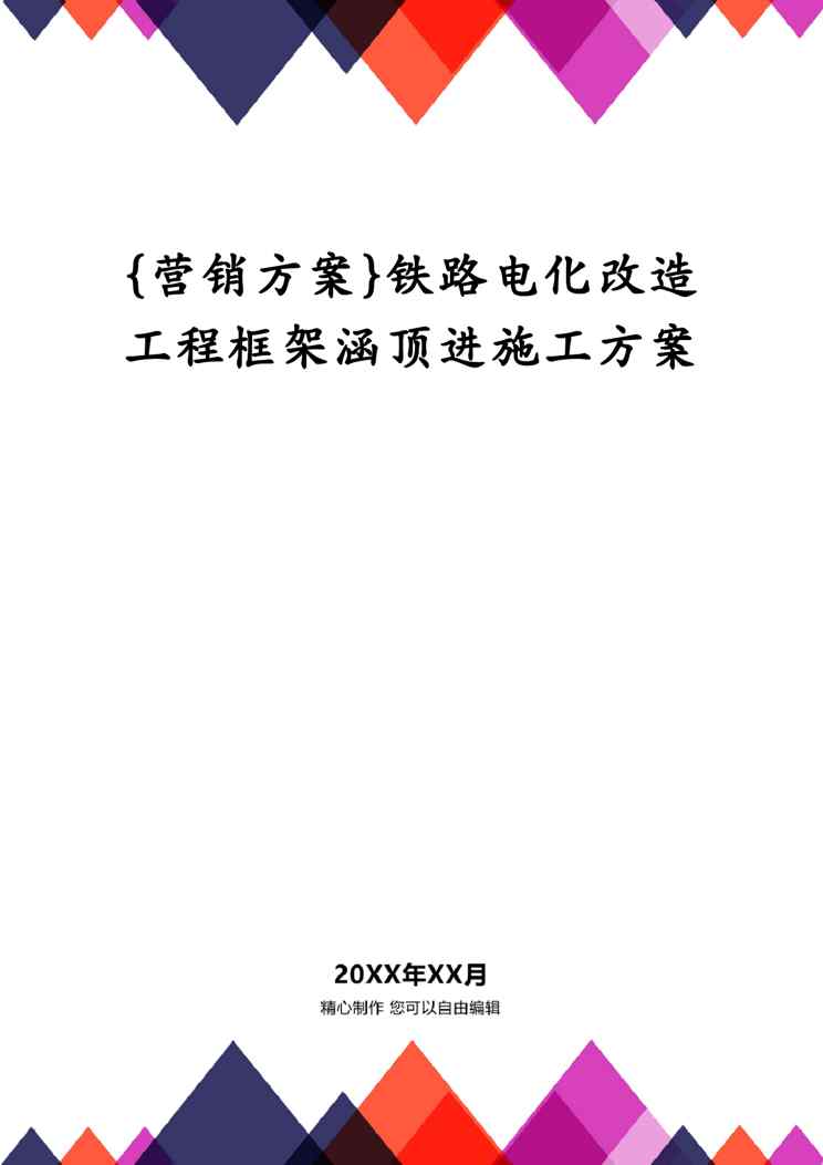 不久前,最新文档《{营销方案}铁路电化改造工程框架涵顶进施工方案》全文正式在本站发布,感兴趣的用户可以下载阅读。 声明:本站所有文章,如无特殊说明或标注,均为本站原创发布。任何个人或组织,在未征得本站同意时,禁止复制、盗用、采集、发布本站内容到任何网站、书籍等各类媒体平台。如若本站内容侵犯了原著者的合法权益,可联系我们进行处理。