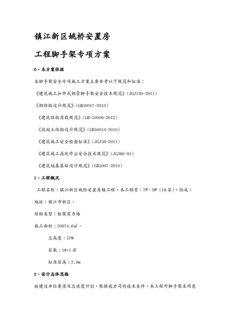 本站资深用户发布了最新的《{营销方案}镇江新区姚桥安置房工程悬挑式扣件钢管脚手架施工方案》文档,以下内容为预览,详细内容可下载阅读。 声明:本站所有文章,如无特殊说明或标注,均为本站原创发布。任何个人或组织,在未征得本站同意时,禁止复制、盗用、采集、发布本站内容到任何网站、书籍等各类媒体平台。如若本站内容侵犯了原著者的合法权益,可联系我们进行处理。