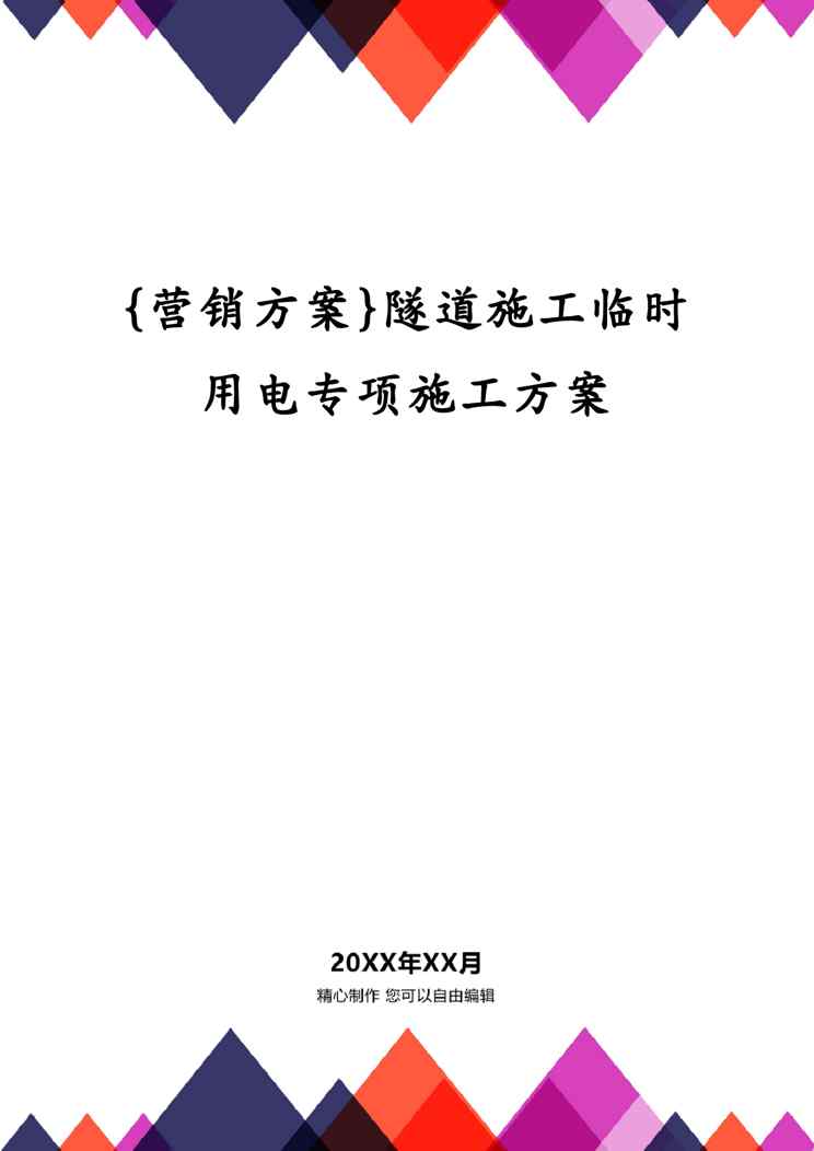不久前,最新文档《{营销方案}隧道施工临时用电专项施工方案》全文正式在本站发布,感兴趣的用户可以下载阅读。 声明:本站所有文章,如无特殊说明或标注,均为本站原创发布。任何个人或组织,在未征得本站同意时,禁止复制、盗用、采集、发布本站内容到任何网站、书籍等各类媒体平台。如若本站内容侵犯了原著者的合法权益,可联系我们进行处理。