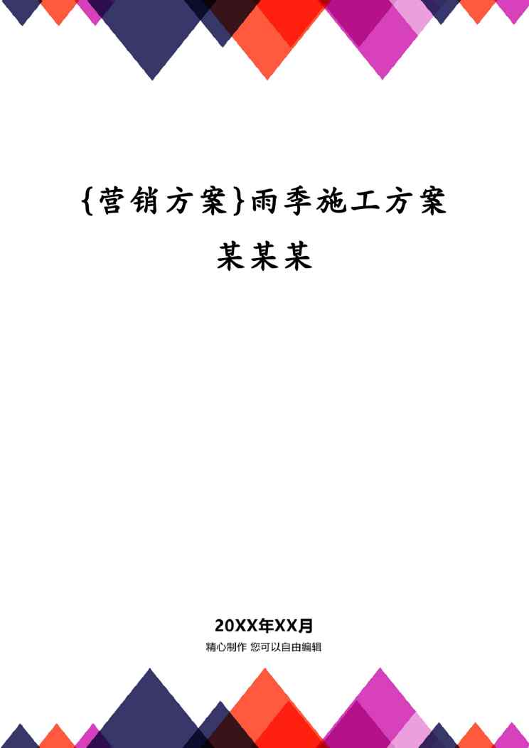 不久前,最新文档《{营销方案}雨季施工方案某某某》全文正式在本站发布,感兴趣的用户可以下载阅读。 声明:本站所有文章,如无特殊说明或标注,均为本站原创发布。任何个人或组织,在未征得本站同意时,禁止复制、盗用、采集、发布本站内容到任何网站、书籍等各类媒体平台。如若本站内容侵犯了原著者的合法权益,可联系我们进行处理。