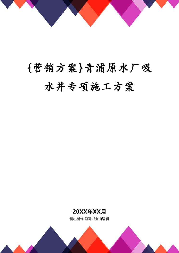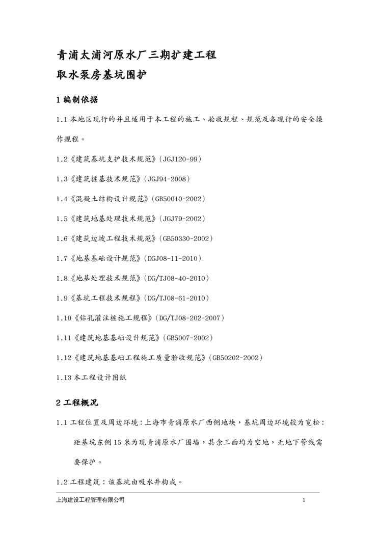 本站资深用户发布了最新的《{营销方案}青浦原水厂吸水井专项施工方案》文档,以下内容为预览,详细内容可下载阅读。 声明:本站所有文章,如无特殊说明或标注,均为本站原创发布。任何个人或组织,在未征得本站同意时,禁止复制、盗用、采集、发布本站内容到任何网站、书籍等各类媒体平台。如若本站内容侵犯了原著者的合法权益,可联系我们进行处理。