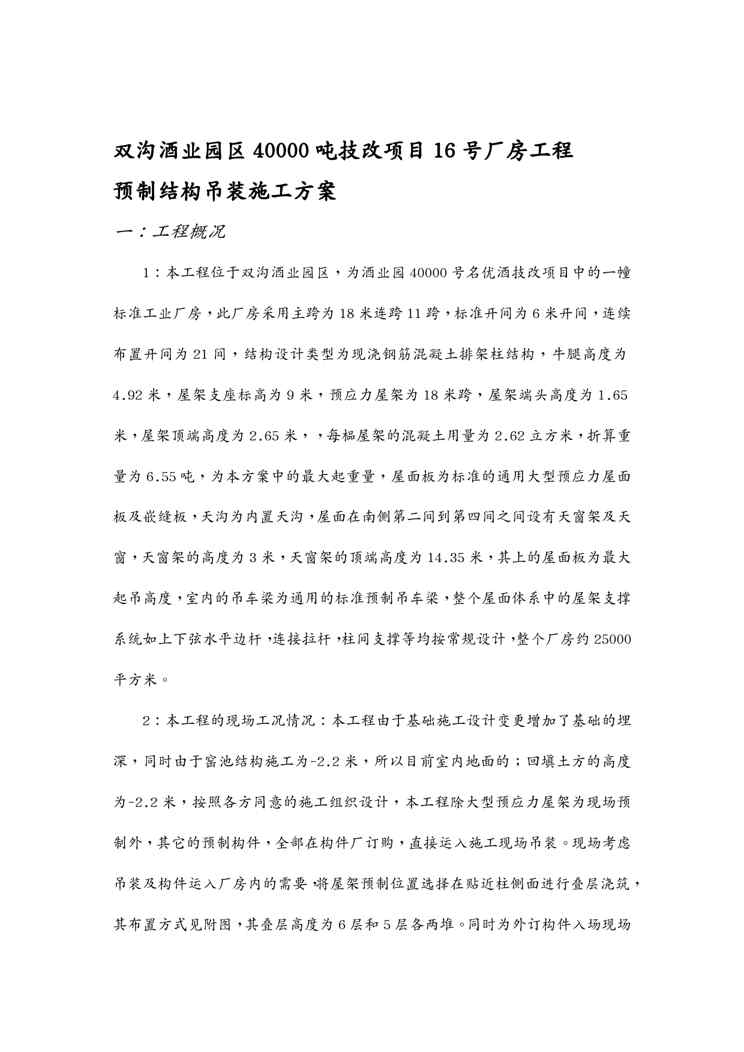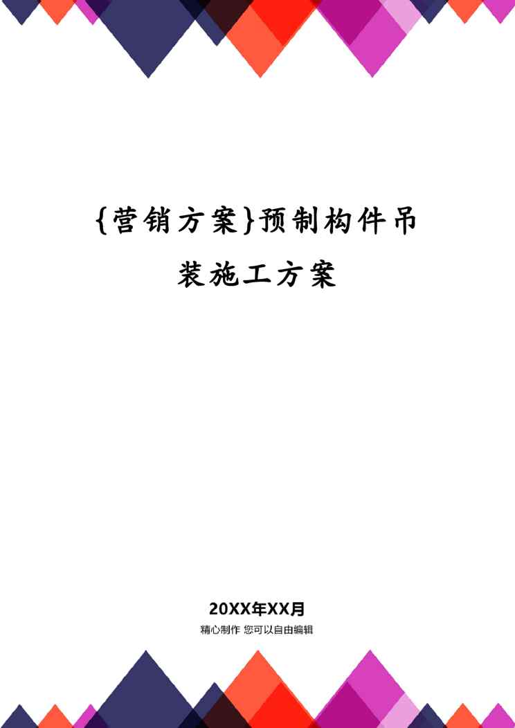 本站资深用户发布了最新的《{营销方案}预制构件吊装施工方案》文档,以下内容为预览,详细内容可下载阅读。 声明:本站所有文章,如无特殊说明或标注,均为本站原创发布。任何个人或组织,在未征得本站同意时,禁止复制、盗用、采集、发布本站内容到任何网站、书籍等各类媒体平台。如若本站内容侵犯了原著者的合法权益,可联系我们进行处理。