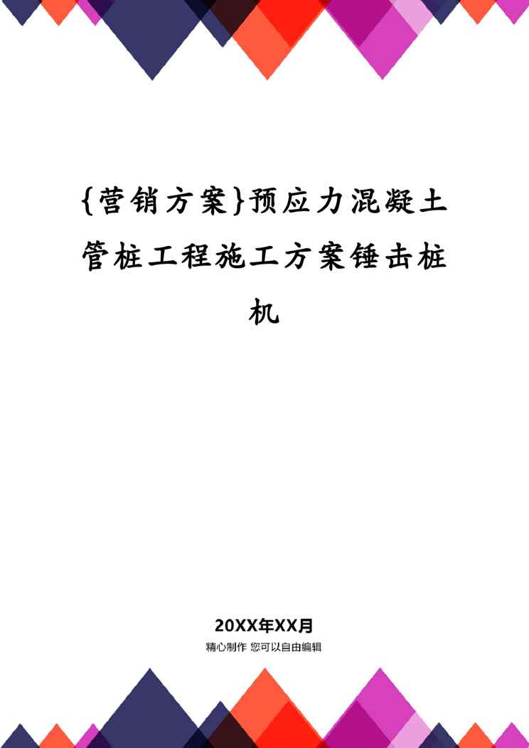 不久前,最新文档《{营销方案}预应力混凝土管桩工程施工方案锤击桩机》全文正式在本站发布,感兴趣的用户可以下载阅读。 声明:本站所有文章,如无特殊说明或标注,均为本站原创发布。任何个人或组织,在未征得本站同意时,禁止复制、盗用、采集、发布本站内容到任何网站、书籍等各类媒体平台。如若本站内容侵犯了原著者的合法权益,可联系我们进行处理。