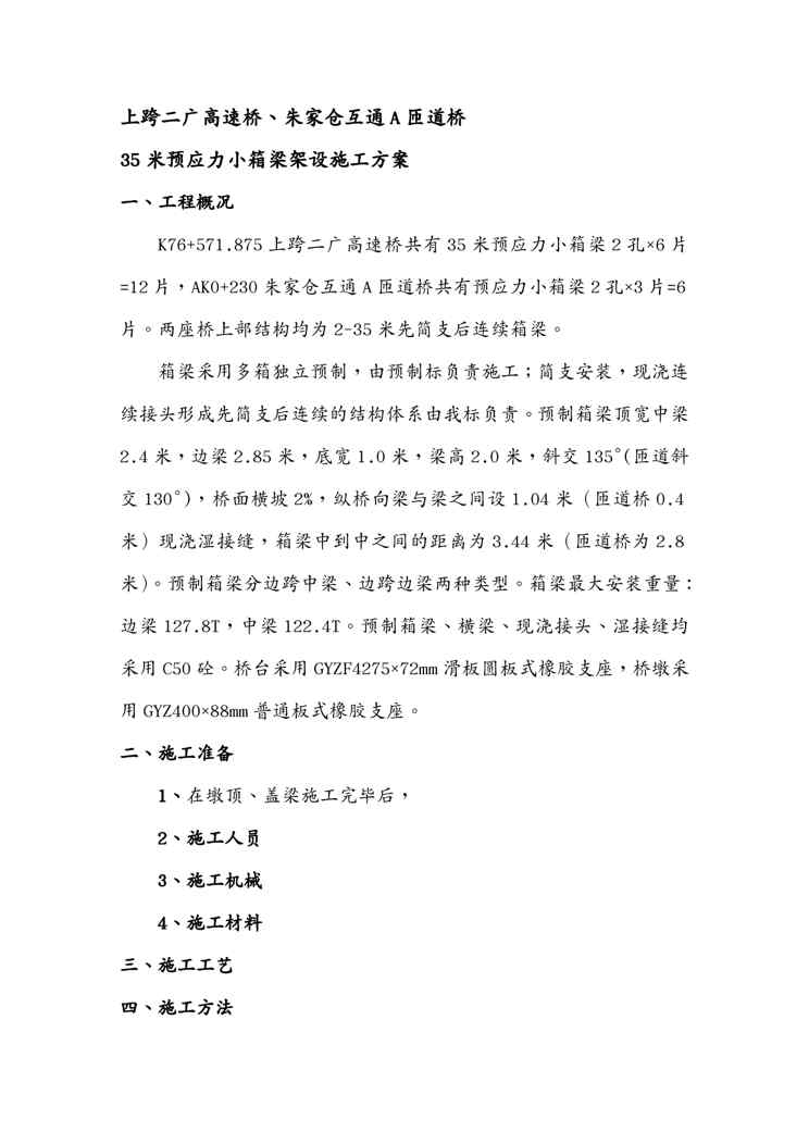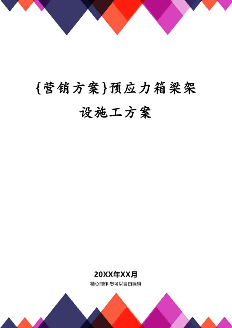 本站资深用户发布了最新的《{营销方案}预应力箱梁架设施工方案》文档,以下内容为预览,详细内容可下载阅读。 声明:本站所有文章,如无特殊说明或标注,均为本站原创发布。任何个人或组织,在未征得本站同意时,禁止复制、盗用、采集、发布本站内容到任何网站、书籍等各类媒体平台。如若本站内容侵犯了原著者的合法权益,可联系我们进行处理。