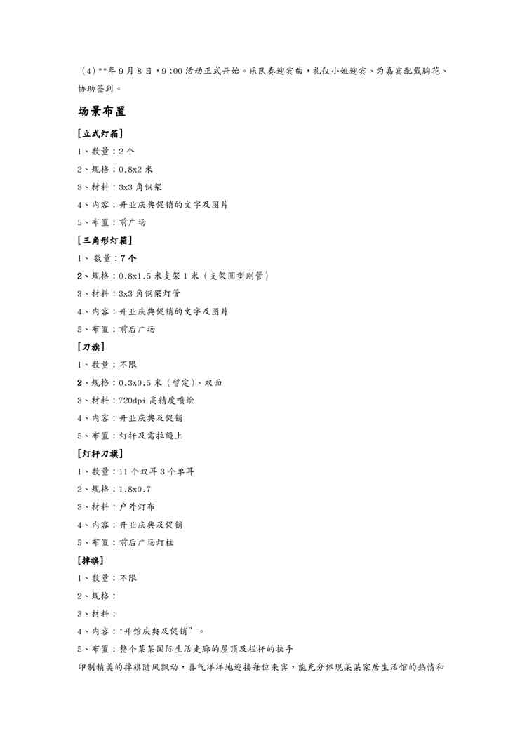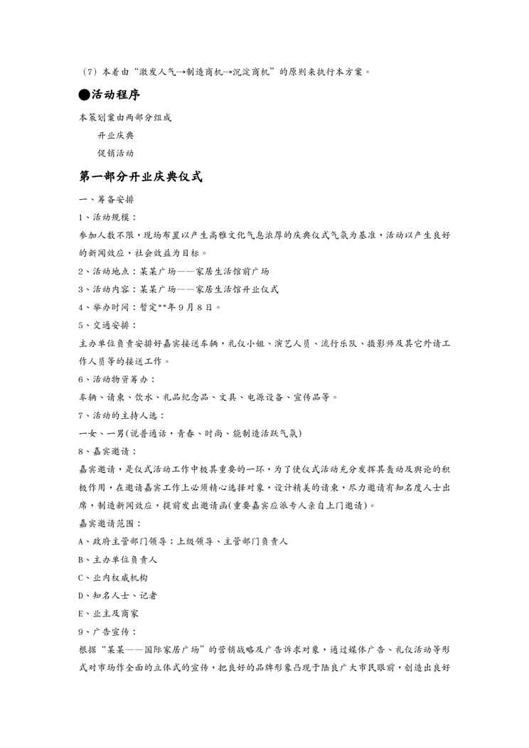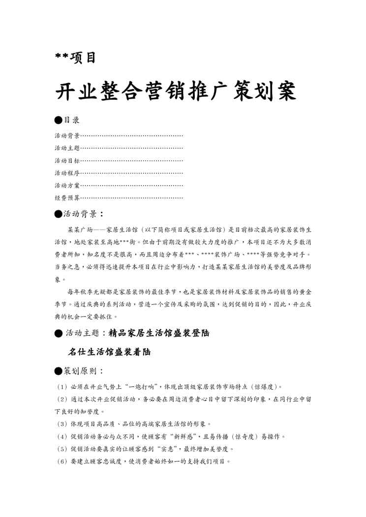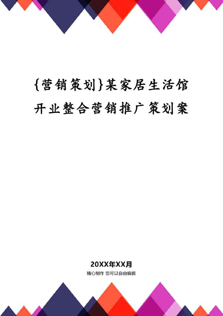 本站资深用户发布了最新的《{营销策划}某家居生活馆开业整合营销推广策划案》文档,以下内容为预览,详细内容可下载阅读。 声明:本站所有文章,如无特殊说明或标注,均为本站原创发布。任何个人或组织,在未征得本站同意时,禁止复制、盗用、采集、发布本站内容到任何网站、书籍等各类媒体平台。如若本站内容侵犯了原著者的合法权益,可联系我们进行处理。