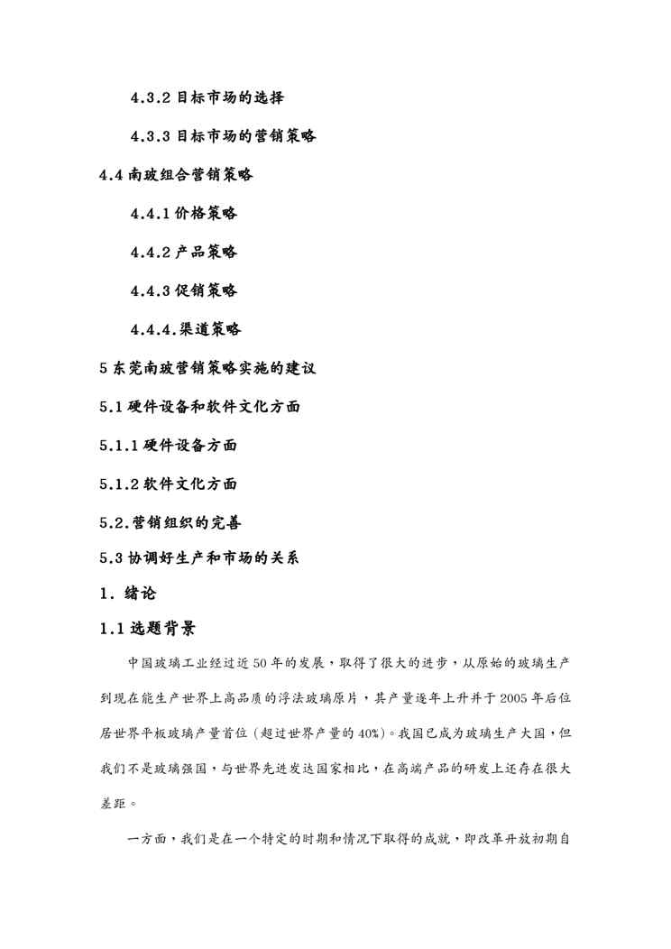 本站资深用户发布了最新的《{营销策略}某市南玻玻璃营销策略研究》文档,以下内容为预览,详细内容可下载阅读。 声明:本站所有文章,如无特殊说明或标注,均为本站原创发布。任何个人或组织,在未征得本站同意时,禁止复制、盗用、采集、发布本站内容到任何网站、书籍等各类媒体平台。如若本站内容侵犯了原著者的合法权益,可联系我们进行处理。
